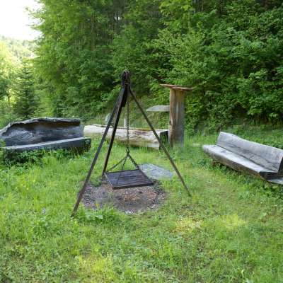 Die Grillstelle in Bargen ist ausgerüstet mit Feuerstelle, zwei Holzbänken und einem Brunnen.