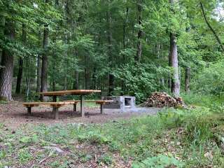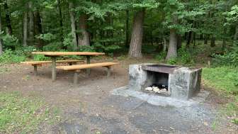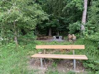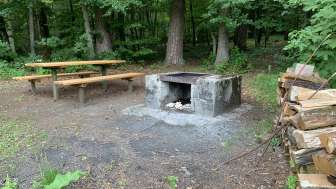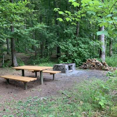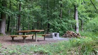Ein Picknick-Tisch sowie eine Feuerstelle laden zum Grillieren und Picknicken ein. Mit etwas Glück hat es Holz bei der Grillstelle. Dies ist jedoch nicht zwingend.