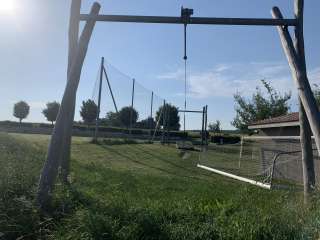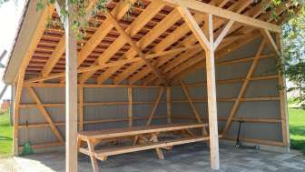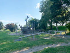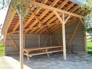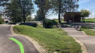Neben der Feuerstelle hat es einen Unterstand mit zwei Tischen sowie einen Pumptrack und Spielplatz. Diese Grillstelle ist somit perfekt für Familien geeignet.