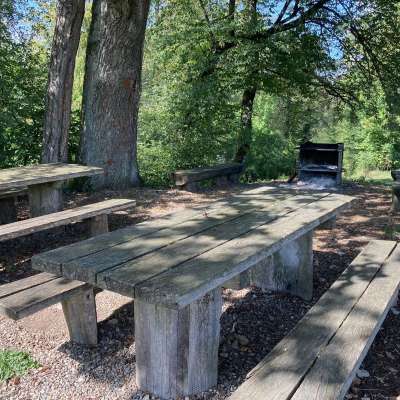 Am Waldrand gelegene Grllstelle mit tollem Ausblick auf die Rebberge von Hallau. Die Grillstelle liegt etwa 15 Gehminuten vom Parkplatz zuoberst auf dem Hallauerberg entfernt.