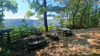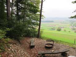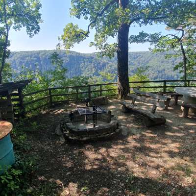 Hübscher Grillplatz mit rundem Tisch und einer tollen Aussicht.