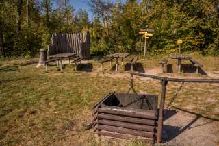 Eine Feuerstelle sowie vier Tische mit Bänken machen die Grillstelle zum perfekten Grillplatz für Gruppen. Zusätzlich hat es Feuerholz vor Ort (ohne Garantie).