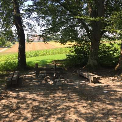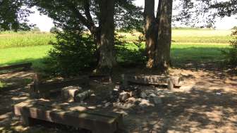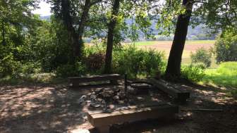 Die Grillstelle Trotte Peterschlatt hat eine Feuerstelle mit Bänken rundherum.
