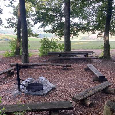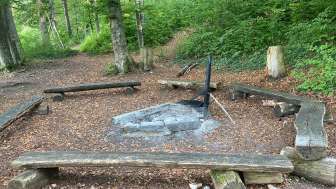 Der kleine Grillplatz bei Beggingen hat eine schöne Feuerstelle mit Bänken rundherum sowie einen Tisch.