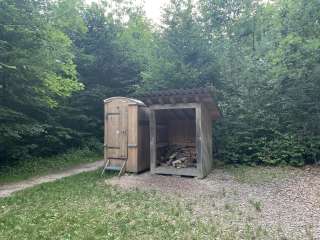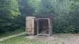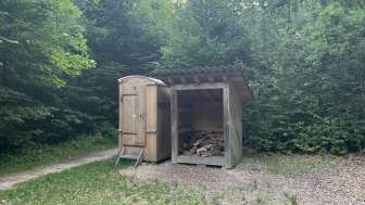 Ebenfalls hat es eine kleine Toilette sowie einen Unterstand mit Holz (wenn nicht leer).