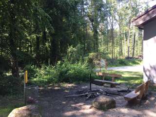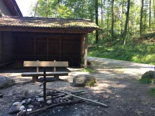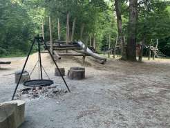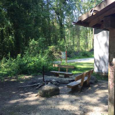 Die Grillstelle beim Pumpwerk hat eine Feuerstelle mit Sitzmöglichkeiten und einem Unterstand.