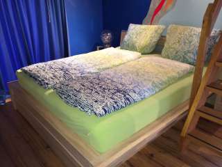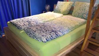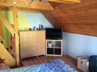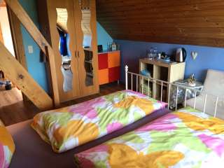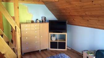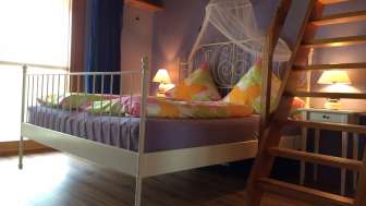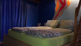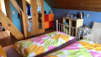Es verfügt über zwei Gästezimmer die sich ein Bad/WC teilen. Meistens wird aber nur eines der beiden Zimmer vermietet. Der Eingangsbereich, Esszimmer und Treppe werden zusammen mit den Vermietern genutzt. Die Zimmer verfügen über zwei Etagen mit einer kleinen Galerie und sind gut geeignet für Familien mit 1-2 Kindern. Das vegetarisch/vegane Frühstück ist sehr reichhaltig und wird im Esszimmer serviert.