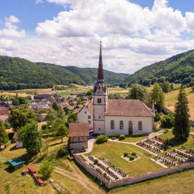 Die Kirche St. Martin in Merishausen zeichnet sich durch ihre hervorragende Lage oberhalb des Dorfes am Heerenberg aus. Die Kirche mit Pfarrhaus und Friedhof bildet eine eigene Baugruppe. Das ins Mittelalter zurückgehende malerische Ensemble reiht sich ein in die bekannten Schaffhauser Bergkirchen Büsingen, Neunkirch, Hallau und Wilchingen.