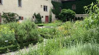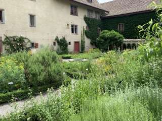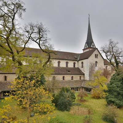 Der grösste Kreuzgang der Schweiz. Teils romanisch 12. Jh., teils gotisch 13. Jh., umschliesst er den romantischen, bezaubernden Kreuzganggarten, den sogenannten «Junkerfriedhof», in dem von 1582 bis 1874 hohe Schaffhauser Magistraten wie Bürgermeister, Ratsherren, Pfarrer und andere verdiente Bürger und Bürgerinnen beigesetzt wurden.