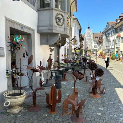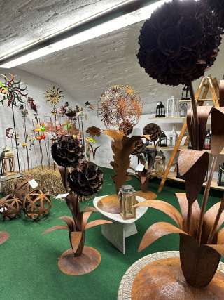 Metallfiguren für draussen und drinnen, Rostblumen, Regenmesser, Wandbilder etc.