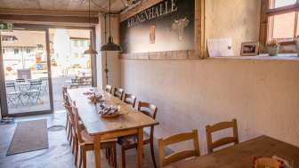 Bestaunen Sie den renovierten Kalbererstall und die imposante Giebelhöhe der Scheune von fast 18 Metern bei feinstem Kuchen und einer exzellenten Auswahl an Desserts. Oder geniessen Sie am Bach ein leckeres SoftIce oder schon den feinen Apéro.