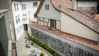 Der Innenhof überrascht: Hier hat der australische Künstler Jamie North eine markante Skulpturenlandschaft kreiert. Eine Wand voller schwebender Steine verleiht dem Innenhof Struktur und Charakter. Kunst und Natur verbinden sich auf einzigartige Weise miteinander. Wer dem geschäftigen Treiben der Altstadt für eine Weile entfliehen möchte, findet hier ein ruhiges Plätzchen.