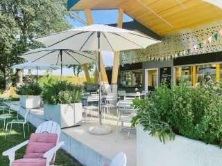 Ausserdem vorhanden: Aussenduschen, Schliessfächer, Umkleiden, Spielplatz, Tischtennis, Volleyballfeld, E-Bike-Ladestation, rollstuhlgängige Toilette, Wickeltisch.