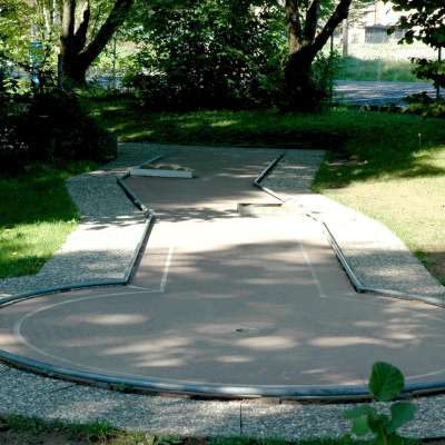 Versuchen Sie in Neuhausen den Minigolfball mit möglichst wenigen Schlägen in das Loch zu bringen. Bahnen mit laufend steigender Schwierigkeit erfordern Geschicklichkeit.