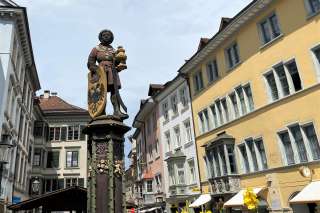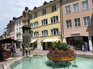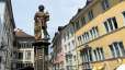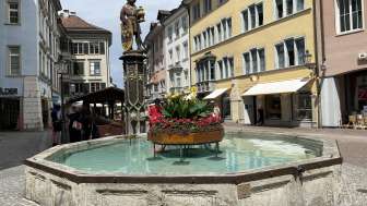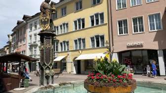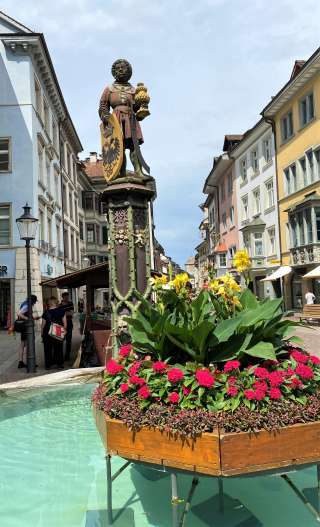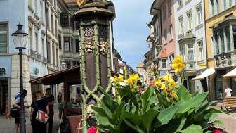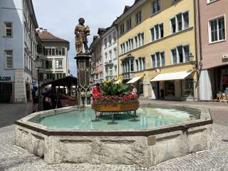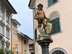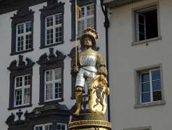 Früher wurde der Mohrenbrunnen Schwertbrunnen genannt. 1535 wurde der damalige Holzbrunnen durch einen aus Stein ersetzt. Die Säule stammt von 1520. Benannt wurde der Mohrenbrunnen nach dem als Mohr dargestellten Kaspar, dem jüngsten der Heiligen Drei Könige mit Krummschwert, Goldpokal und Wappenschild. Im Volksmund liebevoll «de Mohrejoggeli» genannt. Diese originelle Brunnenfigur symbolisiert den wohlhabenden Stadtbürger.