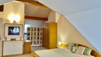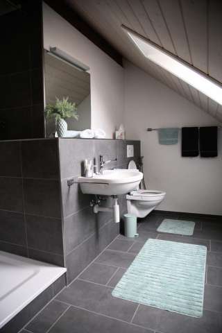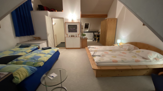 -Das Haus bietet im obersten Stock ein sehr grosses, helles Zimmer mit eigenem Badezimmer und ist geeignet für bis zu 4 Personen