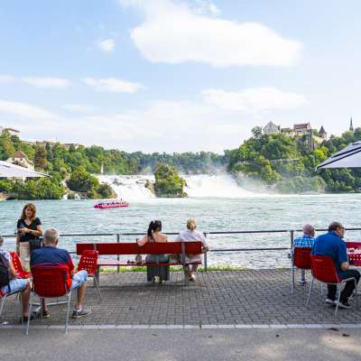 Geniesse im Park Snack eine entspannte Pause am Rheinfall.
