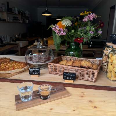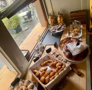 Und weil Haltung nicht beim Kaffee aufhört … Backen wir genauso: Handwerkliches Brot. Selbstgemachte Kuchen. Ehrlich, pur, regional. Butter, Mehl und Co. kommen direkt von Erzeuger:innen aus der Umgebung. Ohne Kram. Ohne Kompromiss. Wie beim Kaffee. Ob Croissant zum Espresso oder Sauerteigbrot für daheim – alles, was wir machen, soll gut schmecken. Und sich gut anfühlen.