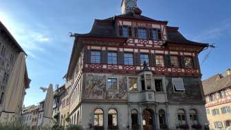 Das prachtvolle Rathaus von Stein am Rhein begeistert mit seinen farbenfrohen Fassadenmalereien und eindrucksvollen Fachwerkdetails. Im Herzen der Altstadt gelegen, zeugt es von der reichen Geschichte und Kultur der malerischen Stadt am Rhein.
