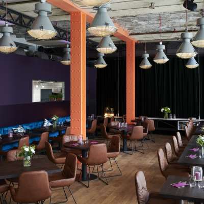 Auf dem SIG Areal in der ehemaligen Eisenbahnwagon-Fabrik am Rhein, direkt beim SBB Bahnhof Neuhausen am Rheinfall, finden Sie das neue Restaurant-Bijou. Die industriellen Räume kombiniert mit den neusten Design-Trends schaffen ein unkompliziertes Ambiente.