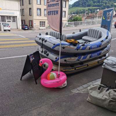 Wir schicken dich ausgerüstet in dein Abenteuer auf dem wohl schönsten Flussabschnitts Europas… Gönne dir eine Auszeit und Entspannung mit Freunden, oder Familie gemütlich den Rhein runter. Die Fahrt führt ab dem malerischen Städtchen Stein am Rhein, vorbei an wunderschönen und naturbelassenen Buchten, an die wohl älteste und schönste Holzbrücke der Schweiz in Diessenhofen und weiter den Rhein runter, bis zur wunderschönen Munotstadt Schaffhausen. Vermietung: Ob eine Schwimmnudel, ein pinker Flamingo, Stand-Up Paddel, bis zum Komplettpaket mit Gummiboot, Schwimmwesten, Trockensack und retournieren der Materialien am Zielort. Wir rüsten dich aus und machen dich so zum idealen Rheinpiraten. Solltest du auch noch deine eigene Gummiyacht mitbringen, pumpen wir sie dir auch gerne mit einem Kompressor vor Ort auf. Wir machen dich vom Teddybären zum Seebären!