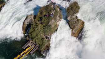 Unser Highlight: die Felsenfahrt – ein unvergessliches Erlebnis mitten im Rheinfall. Steigen Sie auf den Felsen im Zentrum der Wassermassen und erleben Sie die volle Wucht des Rheins aus nächster Nähe. Näher kommt niemand!