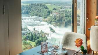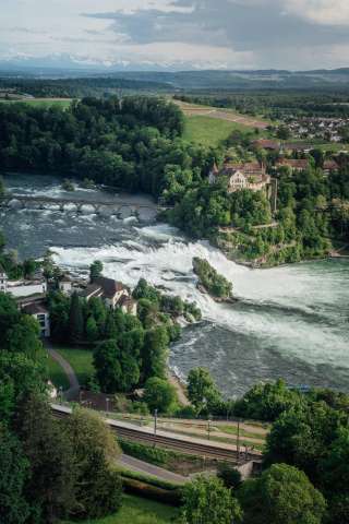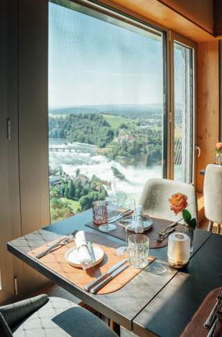 Geniesse einen atemberaubenden Ausblick 136 Meter über dem Rheinfall!