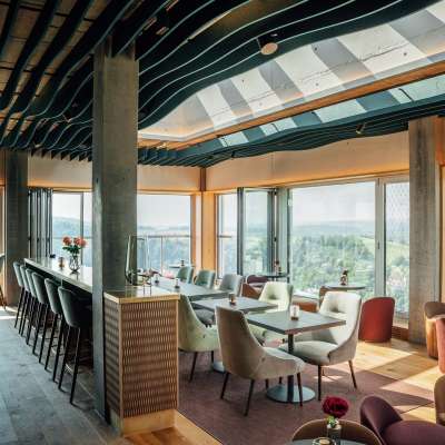 Im RIVI Skyfall Restaurant wird dir 136 Meter über dem beeindruckenden Rheinfall eine spektakuläre Kulisse geboten. Mit einer Kombination aus erstklassiger Gastronomie, atemberaubender Panoramaaussicht und moderner Architektur, ist das RIVI Skyfall der perfekte Ort für ein Dinner, Lunch, oder eine Feier.