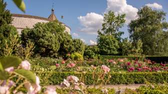 Der Rosengarten liegt direkt neben dem Munot. Der Garten umfasst einw Fläche von rund 2000 Quadratmetern und circa 170 Rosenarten.