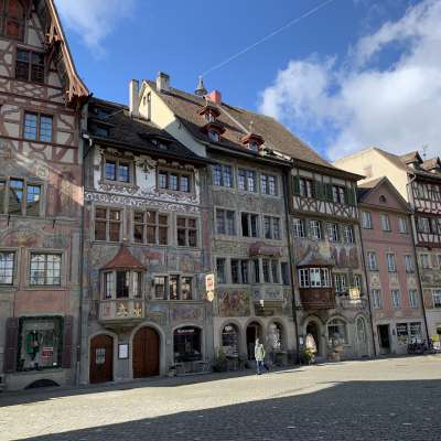 Der Rother Ochsen ist die älteste Taverne der Stadt Stein am Rhein. Diese wurde 1446 gegründet. Das Gebäude wurde 1615 innen und aussen neu gestaltet: Steinerker, spätgotische Staffelfenster, Fassadenmalerei mit humanistischer Thematik und Bemalung der Stube im 2. Obergeschoss durch den Steiner Meister A. Schmucker. Heutzutage gilt die Taverne als eine der schönsten Weinkeller der Schweiz.