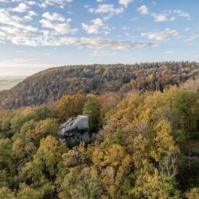 Am Südhang des Rossbergs in Osterfingen, auf einem schroffen Bergsporn, liegt die Burgruine Radegg.