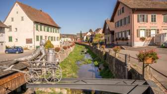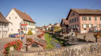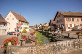 Der Dorfkern reizt mit seinen Fachwerkhäusern und wird dazu vom Dorfbach geprägt, der mitten durch Schleitheim fliesst, der über den Sommer mit Geranien und in der Adventszeit mit Christbäumen schön geschmückt wird.