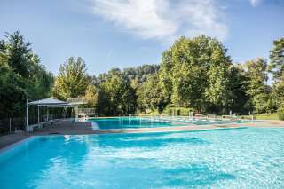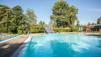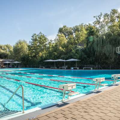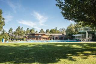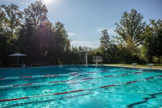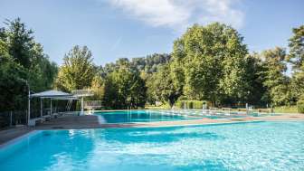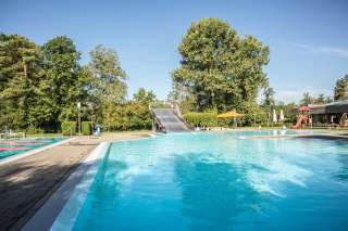 Das Schwimmbad liegt direkt neben dem Campingplatz Flaach.