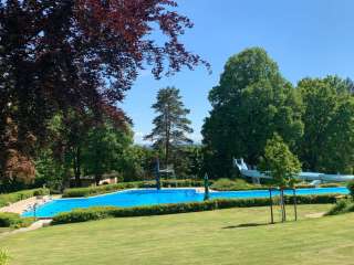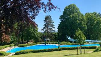 Eingebettet in eine grüne Parkanlage lädt das Freibad zum Entspannen, Schwimmen und Verweilen ein.