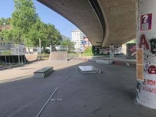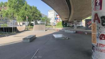 Direkt am Rhein bei der Autobahnbrücke N4 liegt dieser Skatepark.