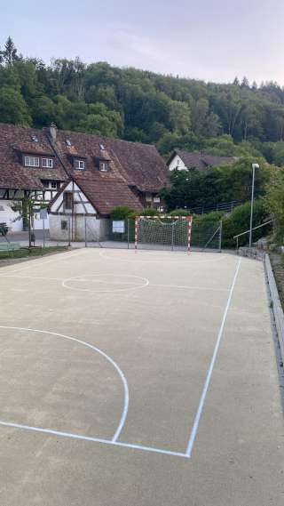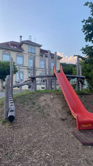Der Spielplatz im Dorfkern von Hemmental liegt direkt beim Schulhaus. Neben einem Klettergerüst, einer Schaukel, einer Wippe und einem Ping Pong Tisch hat es auch einen Hartplatz mit Basketballkorb und einem Fussballplatz.