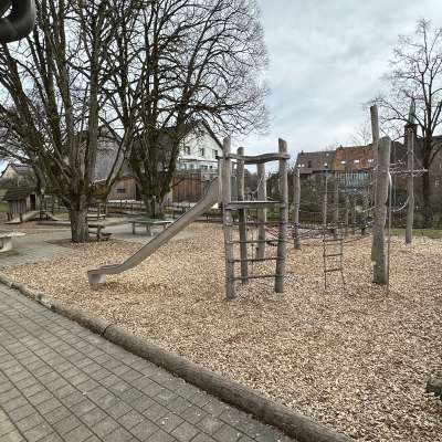 Ein Holzhaus, ein Klettergerüst, eine Rutschbahn, Schaukeln, eine Seilbahn, ein Rundlauf und ein wippender Frosch sowie Ping Pong Tische lassen die Kinderherzen höherschlagen.