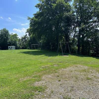 Auf einer grossen Wiese befinden sich zwei Fussballtore und eine Schaukel. Ebenfalls sind zwei Grillplätze vorhanden.