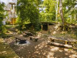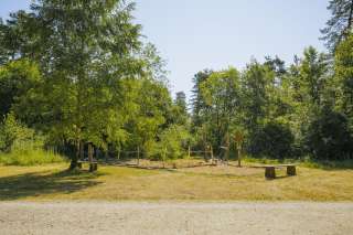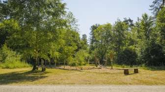 Auf dem Holzgerüst und der Schaukel können sich die Kinder austoben. Direkt beim Spielplatz hat es auch eine Grillstelle zum Bräteln und Tische zum Picknicken.