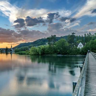 Früheste Spuren führen bis zu der Zeit der Pfahlbauer zurück, deren Zeugnis, eine Bronzesiedlung, 1932 ausgegraben wurden. Auch die Römer hatten hier eine grosse Siedlung, die grösste sogenannte Zivilsiedlung im Kanton Thurgau. Der erste Abt des Klosters Sankt Gallen, Otmar, starb 759 auf der Insel Werd, nachdem er als Sträfling der Franken hierher verbannt worden war. Der Abt wurde auf der Insel beigesetzt, jedoch zehn Jahre später von den Mönchen aus St. Gallen in ihr Kloster zurückgeholt und ein zweites Mal beerdigt. Auf der ehemaligen Grabstätte St. Othmars entstand im 10. Jahrhundert eine Kapelle. Zur gleichen Zeit schenkte der Kaiser Otto I. die Insel Werd dem Kloster Einsiedeln. In dem im 12./13. Jahrhundert angefügten Priesterhaus fanden nun die Geistlichen von Eschenz eine Wohngelegenheit.