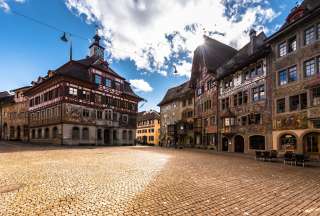 Das prachtvolle Rathaus von Stein am Rhein begeistert mit seinen farbenfrohen Fassadenmalereien und eindrucksvollen Fachwerkdetails. Im Herzen der Altstadt gelegen, zeugt es von der reichen Geschichte und Kultur der malerischen Stadt am Rhein.