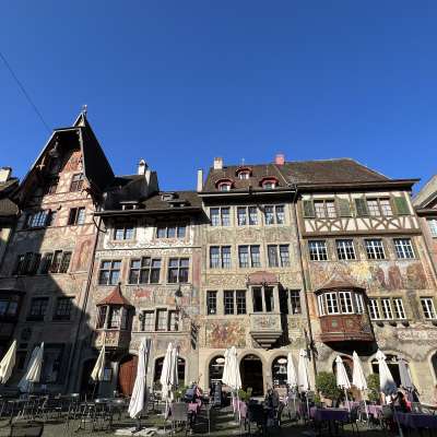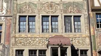 Repräsentatives Wohn- und Handelshaus aus dem frühen 17. Jahrhundert. Das Erdgeschoss war früher eine offene Halle. Viereckiger Steinerker von 1668. Dachuntersicht 1720 mit zwei schwerbeladenen Kaufmannsfuhren bemalt. Das Fassadenbild (Josua und Kaleb mit einer Traube aus dem Land, wo Milch und Honig fliessen) von C. Schmidt um 1900 ist eine Anspielung auf den Wohlstand des früheren Hausherren und den Hausnamen. Reichhaltige Stuckaturen im Innern.