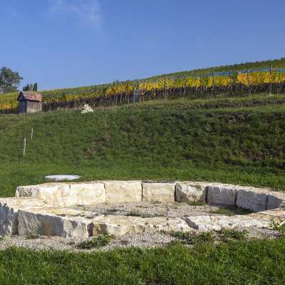 In früheren Zeiten diente das Becken zur Sammlung des Drainagewassers aus den Rebbergen. Heute bietet dieser aus warmem Kalkstein gebaute Platz dem Wanderer einen Moment der Entspannung, der Ruhe, der Stille.