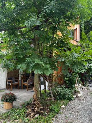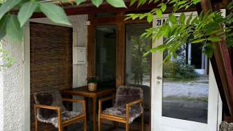 • Kleiner Tisch mit bequemen Stühlen, perfekt zum Entspannen und Genießen der Natur