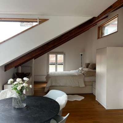 Die Lage: Nur 5 Gehminuten zu Einkaufsmöglichkeiten, nahe Schaffhausen und dem Rheinfall, mit exzellenter Anbindung nach Zürich (30 Minuten). Perfekt für romantische Auszeiten oder produktive Workations – hier kannst du abschalten und neue Energie tanken.