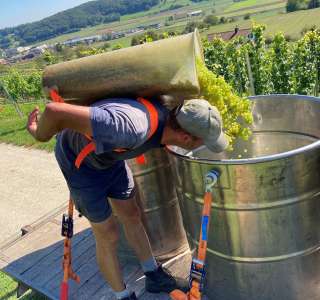 Beginnend beim sorgfältigen Rebschnitt im Winter, dem Unterhalt der Rebanlage weiter über das Anbinden, das Verlesen, das Einschlaufen, den Pflanzenschutz, das Auslauben bis zum Herbsten. Viel überwiegend manuelle Arbeit ist nötig, damit die Reben wachsen und gedeihen.