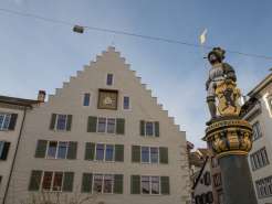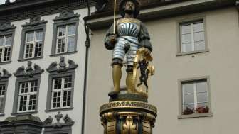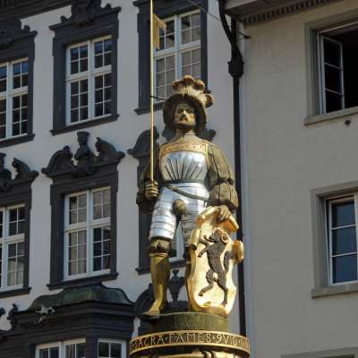 Der Brunnen auf dem Walther-Bringolf-Platz ist über 400 Jahre alt. Er wurde vermutlich 1596 errichtet und im 18. Jahrhundert umgestaltet. Die Säule mit der Landsknechtfigur ist eine Kopie der Statue vom Fischmarktbrunnen, welcher 1840 abgebrochen wurde, und ziert seit 1925 den Walther-Bringolf-Platz-Brunnen.