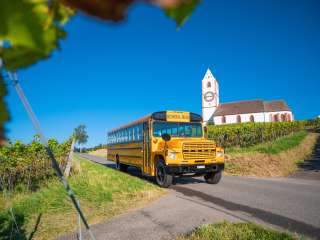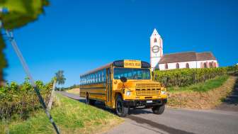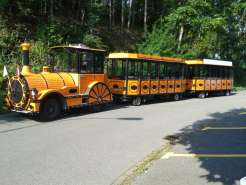 Für die Fahrt mit Erlebnis-Effekt können Sie den Rhyfall Express, den London Bus oder den American School Bus als Gruppe buchen.