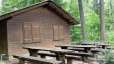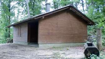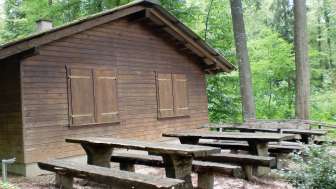 Neben der Hütte hat es eine Grillstelle und diverse Tische und Bänke.