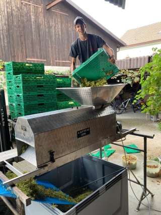 Andreas Neukomm, Winzer und Weintechnologe begleitet die Rebstöcke vom Schneiden bis zur Ernte und darüber hinaus das Keltern der Lagenweine aus bis jetzt 3 verschiedenen Pinot Noir Lagen.